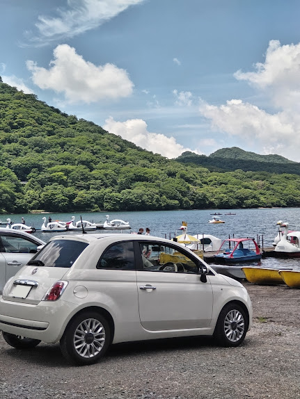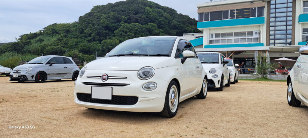 かわいい真っ赤なFiat500とかわいい白いAbarth124spider乗ってます